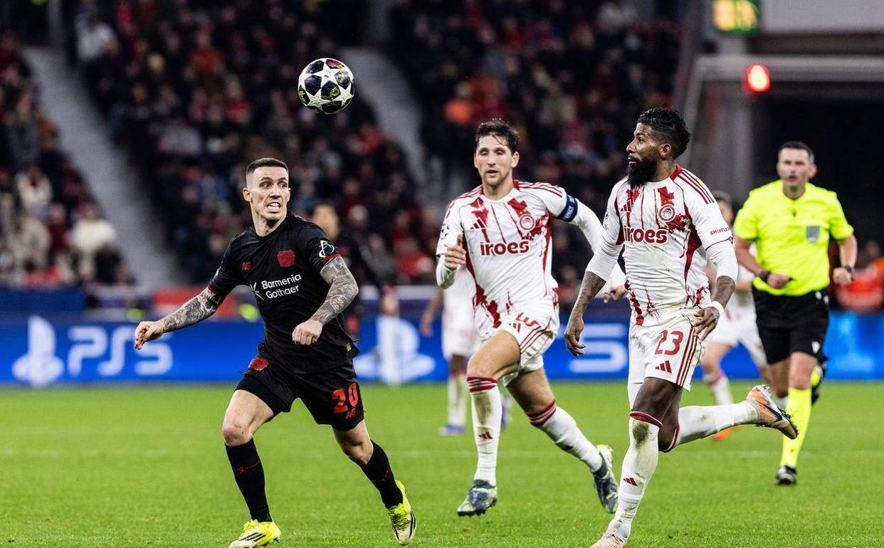 比赛刚开始第3分钟,勒沃库森右路球员巴尔克斯率先发动进攻,他巧妙地送出低平传中,助攻霍夫曼进行射门,但被对方门将措拉斯基奋力扑救并将球挡出底线。随后第7分钟,奥林匹亚科斯获得角球机会,奇基尼奥尝试禁区外远射,却高出了横梁。第27分钟,勒沃库森在对手封堵下出现失误,巴斯克斯传球不准,被对方抢断,马丁斯获得单刀机会但未能形成实质威胁。半场结束时,双方依然0-0,比赛呈现胶着状态。